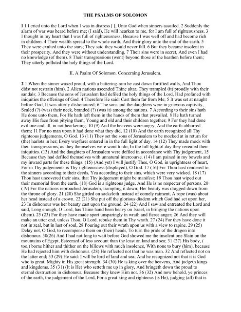 Samekhi S Lit Online Bible Project Psalms Of Solomon 1 1 Eboesa Unto The Lord In The Affliction Of Me At The End Before God Shall Be Put Sinners In The Man